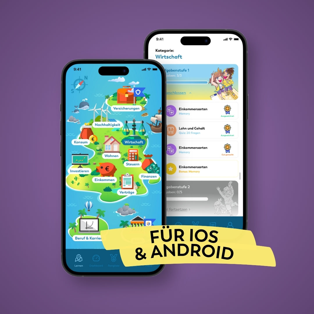 Die Geldhelden App macht den Umgang mit Geld einfach und spannend! Kinder und Jugendliche von 8 bis 20 Jahren lernen spielerisch die Grundlagen der Finanzbildung, Wirtschaftsbildung und Berufsorientierung – von Sparen und Investieren bis hin zu bewusstem Konsum und Geldmanagement.